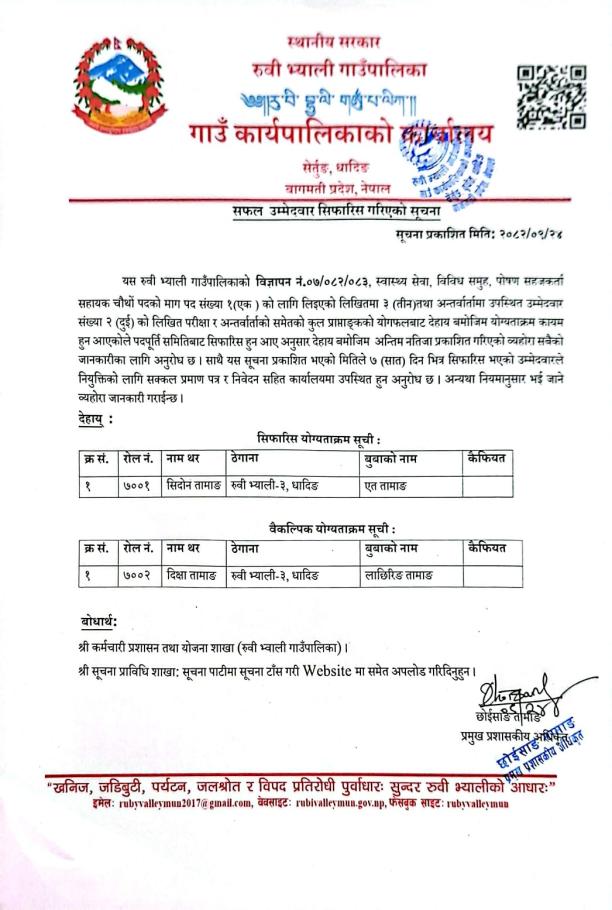 अन्तिम नतिजा प्रकाशन सम्बन्धमा ।।